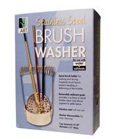 Specially designed for use with mineral spirits, turpentine and other solvents the Airtight Brush Washer features a double latching lid that locks securely, forming an airtight seal so there is no spilling, evaporation or odors. A removable strainer cup lets sediment collect in the bottom. Convenient for travel, the bucket style handle makes it easy to carry or hang and holds 8 ounces. The Stainless Steel Brush Washer is a great compliment for any art sets that features a spiral holder which suspends brush tips to prevent bending or deforming of the bristles as they hang to dry or soak in either water or solvents. A removable sediment grate provides a surface to whisk bristles clean and allows pigment to settle below. The cup measures 4-1/8" diameter x 2" deep. Both washers disassemble for easy cleaning and will not rust!